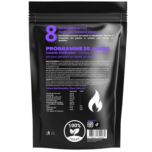 1 MOIS DE CURE ULTRA-CIBLÉE POUR CE BRÛLEUR GRAISSE HOMME & FEMME ! Ses extraits de thé vert & café vert en font un brûle graisses puissant tout en ayant recours à des ingrédients naturels. Dans le cadre d’un regime minceur rapide & d’un régime minceur anti inflammatoire (sans gluten sans lactose, pour les intestins irritables), le brûleur de graisse abdominale femme s’avèrera tout aussi efficace, aussi bien qu’un brûleur de graisse abdominale homme en ciblant les poignées d’amour, la culotte de cheval, le ventre. Technologie avancée pour un effet thermique & métabolique renforcé, le brûleur de graisse puissant perte de poids respecte le rythme & les objectifs de chacun