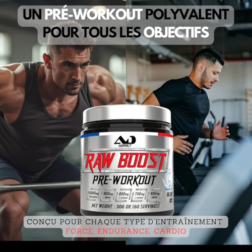💪🏼 Puissance maximale pour l’entraînement : découvrez Raw Boost, le booster de pré-workout idéal pour amplifier énergie et endurance. Formulé avec 200 mg de caféine, ce preworkout est parfait pour atteindre vos objectifs de performance.