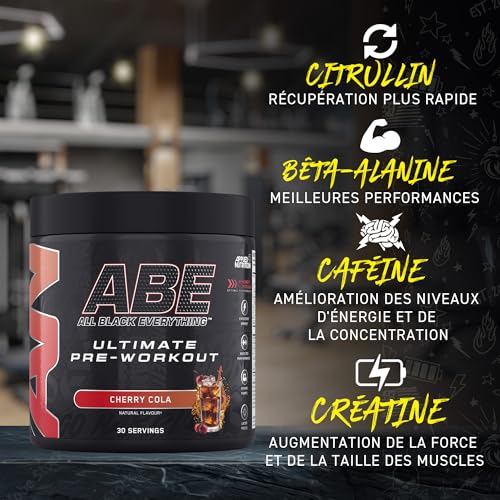 Spécification: Applied Nutrition ABE Pré-Entraînement – All Black Everything Poudre Pre Workout à Base de Citrulline, de Créatine et de Bêta-Alanine, Énergie (375 g (Lot de 1), Tropical)