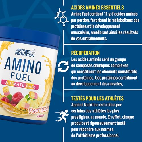 Spécification: Applied Nutrition Amino Fuel Complément d’Acides Aminés, Poudre d’Acides Aminés Essentiels, BCAA en Poudre, Carburant Musculaire et Récupération (390 g – 30 Portions)