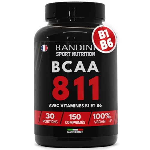 Spécification: Bandini® BCAA 8.1.1 | Acides Aminés à Chaîne Ramifiée, Leucine, Isoleucine, Valine + Vitamine B1 et B6 | Récupération Musculaire Pré et Post Workout | Acide Amines 8:1:1 150 comprimés | 100% Vegan
