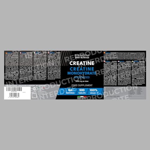Spécification: Bandini® Créatine Monohydrate 3000mg Vegan – 500 Comprimés (+5 Mois) – Augmente les Performances Physiques & la Force Musculaire – Booster Musculation Puissant – Creatine Micronisée 100% Pure et Vegan