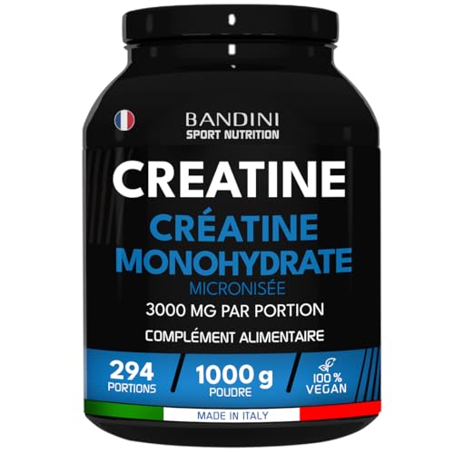 Spécification: Bandini® Créatine Monohydrate Poudre 1 kg 100% Pure pour l‘Entraînement de Force | Creatine Micronisée 1kg Haut dosage Sport & Fitness | Pre Workout Puissant | 292 Portions | Micronized Vegan Powder
