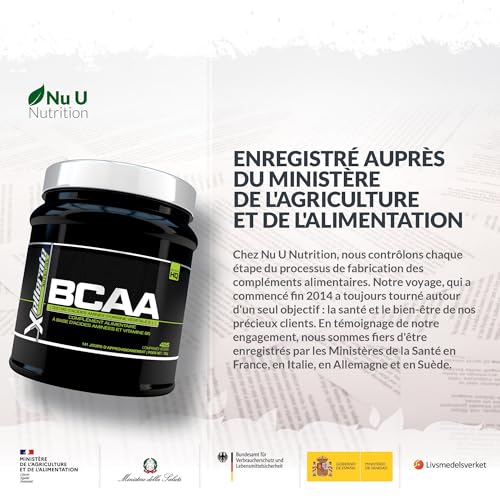 ✔ PUISSANCE MAXIMALE & PLUS D’INGREDIENTS – Nos comprimés BCAA d’une proportion de 2:1:1 de Haute Qualité contiennent 1000mg par comprimé, beaucoup plus puissant que d’autres marques leaders du marché, réduisant le nombre de comprimés à prendre. Chaque portion journalière de 3 comprimés, soient 3000mg, vous fournit 1500mg de L-Leucine, 750mg de L-Isoleucine, 750mg de L-Valine et 3mg de Vitamine B6.