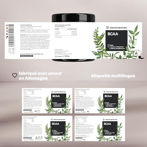 BCAA – 360 petites gélules – acides aminés essentiels leucine, isoleucine et valine – végane, hautement dosé, sans additifs – fabriqué et contrôlé en laboratoire en Allemagne