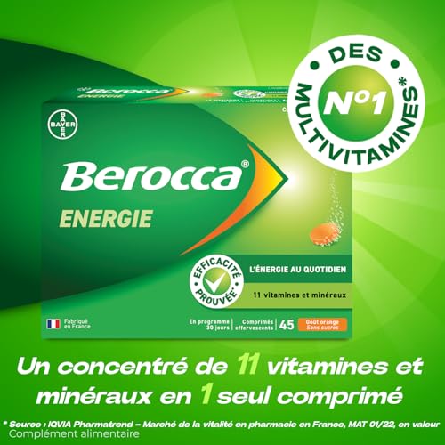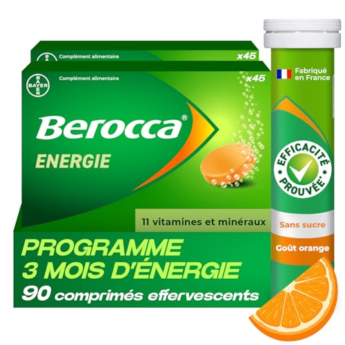 Il suffit de prendre un comprimé effervescent par jour le matin, à dissoudre dans un grand verre d’eau. Le format effervescent permet une absorption rapide des nutriments, tout en offrant un goût agréable et rafraîchissant à l’orange. Berocca Energie s’intègre ainsi facilement dans votre routine matinale.