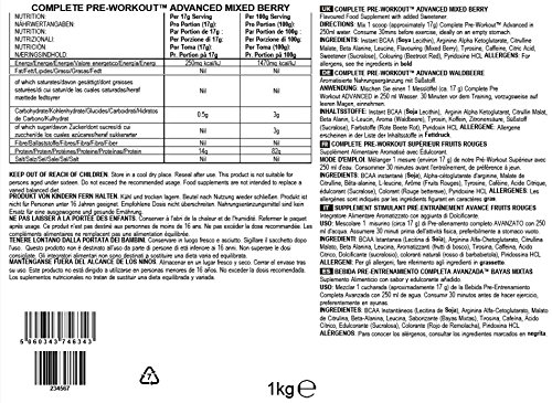 Spécification: Bulk Pre Workout Advanced, Fruits Rouges, 1 kg, 58 Portions