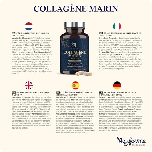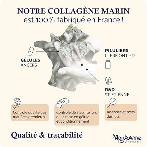 🐓 CONSOMMEZ 100% MADE IN FRANCE : Notre pilulier est fabriqué à Clermont-Ferrand, nos gélules 100% végétales à Angers et notre centre R&D est basé à Saint-Etienne. En choisissant Apyforme, vous favorisez l’économie de nos régions. De plus, nos produits sont garantis sans OGM, sans gluten, sans lactose, sans titane et sont certifiés HACCP. Collagène marin issu de la pêche durable. Faites l’expérience du collagène marin Apyforme dès aujourd’hui !