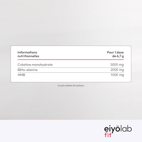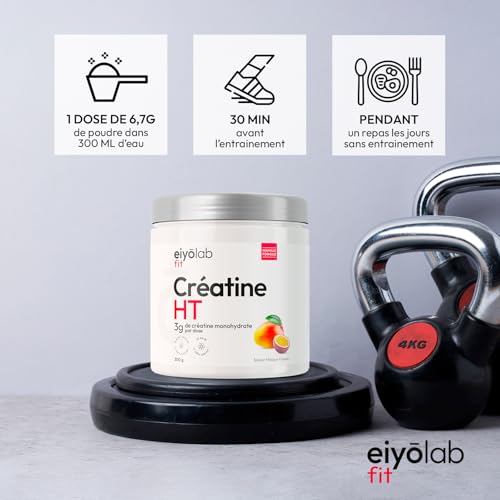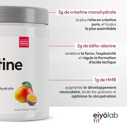Spécification: CREATINE HT | Créatine Monohydrate Pure en Poudre | Enrichie en Bêta-Alanine et HMB | Booster de Performances Musculaires | Sans Additifs | Mélange Facile Saveur Mangue Passion | 300g | Eiyolab