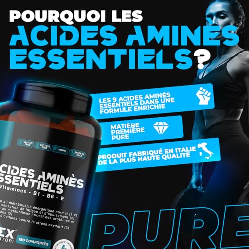 Complément alimentaire à base d’acides aminés essentiels en comprimés de 1,5 g issus de fermentation naturelle sans OGM ni produits de synthèse