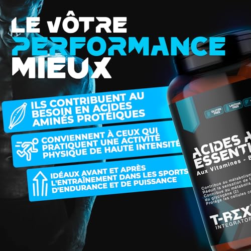 Soyez le premier à laisser votre avis sur “EAA Essential Amino Acids – avec mélange de vitamines B1, B6 et E – Supplément Végétalien d’Acides Aminés Essentiel Naturels Obtenus par Fermentation. T-Rex Integratori (150 Comprimés)”