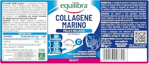Spécification: Equilibra, Naticol Collagène marin hydrolysé, 90 Comprimés, 1200 mg de Collagène par dose, 80 mg de Vitamine C par dose, Collagène de Type I et III, Maintien de l’Elasticité de la Peau