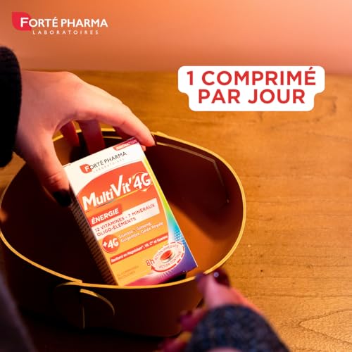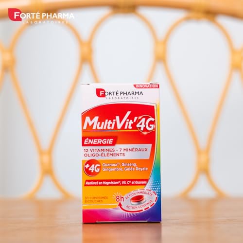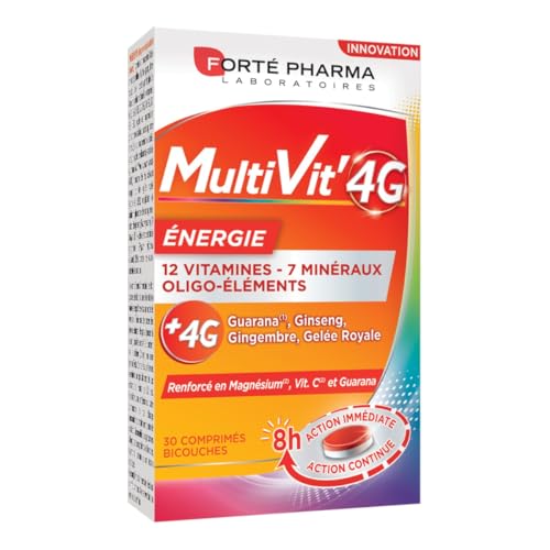 Forté Pharma – Multivit’ 4G Energie – Complément Alimentaire Forme et Tonus – 12 Vitamines, 7 Minéraux, Guarana, Gelée royale, Ginseng, Magnésium – Fatigue, Irritabilité – 30 comprimés Bi-couches