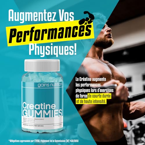 Creatine Gummies de Gains Nutrition pour la Performance – La créatine augmente les performances physiques lors de séries successives d’exercices à court terme et de haute intensité avec un apport quotidien de 3 000 mg. La créatine est efficace pour la croissance musculaire à court et à long terme.