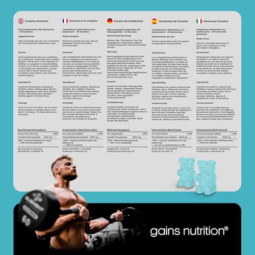 Spécification: GN Creatine Gummies | 60 Bonbons Gelifies Créatine à Macher pour Hommes et Femmes – 3000 mg Monohydrate de Creatine par Portion | Goût Fruits Rouges Sans OGM Adapté aux Végétaliens et Végétariens