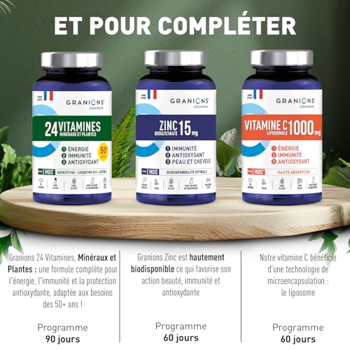 Soyez le premier à laisser votre avis sur “GRANIONS 24 VITAMINES – Multivitamines et Minéraux – Magnesium, Zinc, Vitamine C, Selenium, Coenzyme Q10, Luteine – Energie, Immunité – Vitamines Adultes – 90 Comprimés – 3 MOIS – Fabriqué en FRANCE”