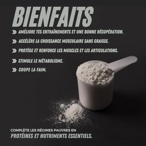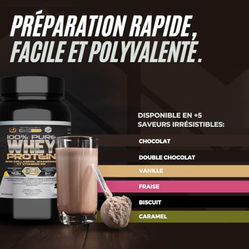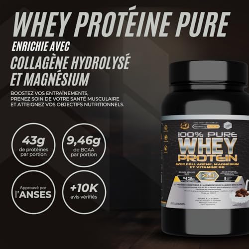 Whey Protein est un complément pionnier qui associe des protéines de lactosérum exclusives, du collagène pur et du magnésium assimilable pour une récupération musculaire complète et efficace. Sa formule de haute pureté et de pré-assimilation favorise le développement propre de la masse musculaire, optimisant l’oxygénation et la force musculaire sans provoquer d’inconfort digestif. De plus, sa teneur en magnésium microfiltré aide à prévenir les crampes, permettant des entraînements plus intenses et efficaces, idéal pour atteindre rapidement vos objectifs de remise en forme.