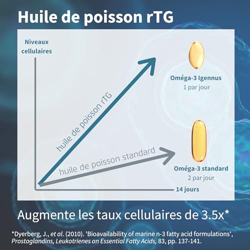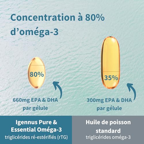 Spécification: Igennus – Huile de Poisson Sauvage Oméga-3 Ultra Pure & D3 1000 UI, Certifié IFOS, 1 par jour, 60 gélules, Acides Gras 660mg EPA & DHA, Triglycérides rTG à Action Rapide, sans OGM