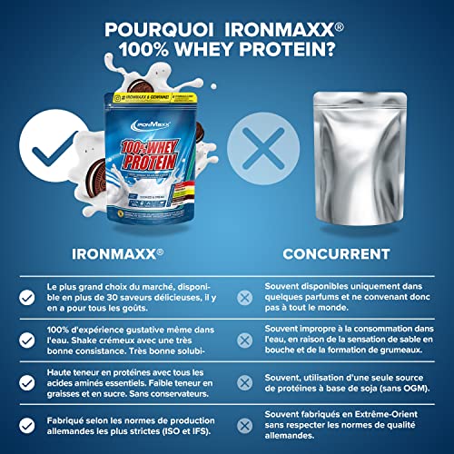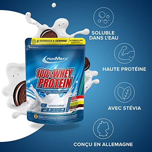 IronMaxx 100% Whey Protein – Protéines de Lactosérum en poudre, hydrosolubles – Goût Cookies et Crème – 1 x sac de 500 g