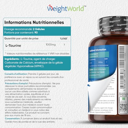 Soyez le premier à laisser votre avis sur “L-Taurine 1000mg Par Portion – 180 Taurine Gelules Vegan (3 Mois) – Taurine Pure Acide Aminé pour Sportifs – Nutrition Workout, Pre & Post-Entraînement, Sans Stéarate de Magnesium, WeightWorld”