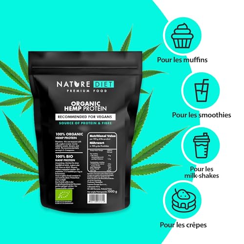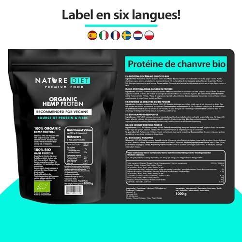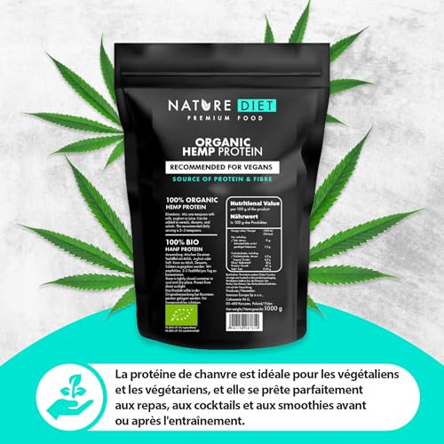 Nature Diet – Protéine de Chanvre Bio 1000g | Végétalien | Poudre de protéine | À base de plantes
