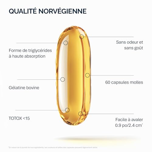 PROFIL ÉLEVÉ DE SÉCURITÉ ET D’EFFICACITÉ: ✓ Convient aux enfants à partir de 3 ans et aux adultes ✓ Autorisé pour les enceintes et allaitantes ✓ Fraîcheur de l’huile de poisson: le faible degré d’oxydation de l’huile < 15 ! Un niveau maximal permis fixé par la réglementation de l’UE est 26. Les poissons frais ont un niveau de TOTOX CARACTÉRISTIQUES PRINCIPALES #1 Selon le règlement (UE) no 536/2013 de la Comission du 11/06/2013 EPA et DHA contribuent à une fonction cardiaque normale et au maintien d'une pression artérielle normale Améliore la memoire, l'attention et les fonctions mentales Normalise les processus métaboliques chez les personnes en surpoids, ce qui les aide à maigrir Participe à la formation du système nerveux et des organes visuels chez les enfants CARACTÉRISTIQUES PRINCIPALES #2 Les acides gras Oméga-3 nourrissent les cheveux, stimulent leur épaississement, contribuent au renforcement des follicules, ce qui prévient la chute des cheveux Améliore la santé reproductive des hommes et des femmes A un effet positif sur la qualité de la peau, favorise son hydratation et le lissage des rides Favorise la vitalité, l'énergie, la jeunesse et prévient des processus de vieillissement Complement alimentaire optimal! CONSEILS D'UTILISATION ET INGRÉDIANTS: Hommes et femmes adultes: Une composition biologiquement active, les ingrédients pour la dose journalière (2 gelules): Oil de fish 2000 mg, Omega-3 AGPI 600 mg, dont EPA (l’acide eicosapentaénoïque) 360 mg et DHA (l'acide docosahexaénoïque) 240 mg, Vitamine E 1,48 mg. La capsule du produit est composée de gélatine de bœuf et est certifiée Halal JUHF POISSONS SAUVAGES DES EAUX FROIDES NORVÉGIENNES - NFO Omega-3 1000 mg utilise des maquereaux, des sardines et des anchois sauvages fraîchement pêchés dans les eaux pure et froides de la Norvège. Complement alimentaire fabriqué à partir d'ingrédients naturels NOUVELLE QUALITÉ DE VIE - Fabriqué en Norvège. Production de haute technologie conformément aux normes GMP et ISO. Améliorez votre santé et votre corps et sentez l'amour de la nature grâce à nos compléments alimentaires qui vous aident à maintenir un mode de vie sain SANS AMA ET SANS OGM - Les produits NFO ne contiennent pas de drogues toxiques, puissantes, synthétiques ou psychotropes, ni de composants dopants figurant sur la liste 2021 de l'AMA, d'OGM (organismes/plantes transgéniques), de pesticides, d'hormones, de nanoparticules ou d'ingrédients produits à l'aide de la nanotechnologie [amz_corss_sell asin="B0BCD15NSF"]