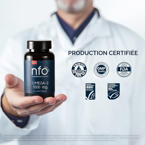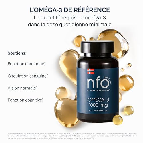 Spécification: NFO OMEGA 3 1000 mg [60 Capsules] Huile de poisson norvégienne concentrée en EPA et DHA avec des triglycérides et vitamine E Complexe naturel de poissons sauvages fraîchement pêchésFabriqué en Norvège
