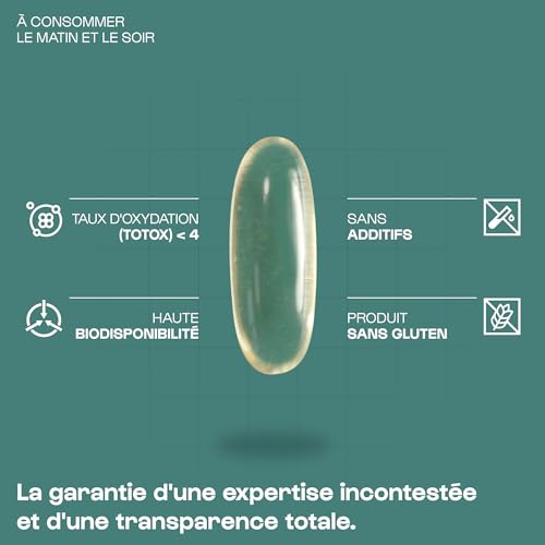 ⚖️ÉQUILIBRE EPA/DHA – Les acides gras essentiels Oméga 3 sont des lipides principalement issus des graisses de poissons. Les oméga 3 Nutrielement respectent l’équilibre EPA/DHA afin d’obtenir un apport complet. Nos Oméga 3 possèdent un indice d’oxydation très faible (