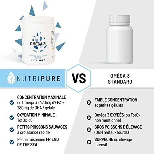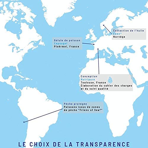 MADE IN FRANCE : Les compléments alimentaires Nutripure sont fabriqués en France et sont sans OGM. Notre huile de poisson est labelisée EPAX et Friends of the Sea, garantissant une pêche éco-responsable et une pureté supérieure aux normes en vigueur. Produit sans gluten, non vegan.