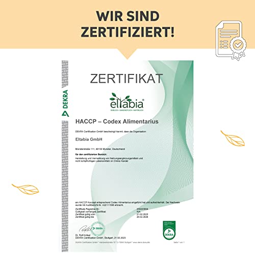 Fabriqué en Allemagne – eltabia permet de transformer en douceur les matières premières naturelles en Allemagne en produit final. Pour ce faire, nous basons notre production selon le concept HACCP. Ainsi, les nutriments précieux restent intacts.