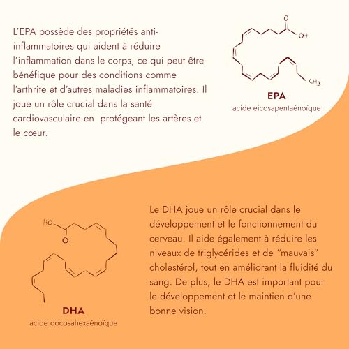 💎 Santé cérébrale : Le DHA est essentiel pour le développement et le fonctionnement du cerveau. Il aide à améliorer la mémoire et les fonctions cognitives.
