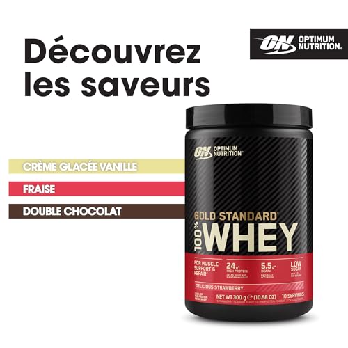 Optimum Nutrition Gold Standard 100% Whey, Poudre de Protéines pour Construction et Récupération Musculaire, avec Glutamine et Acides Aminés BCAA Naturels, Fraise, 10 Portions, 300g