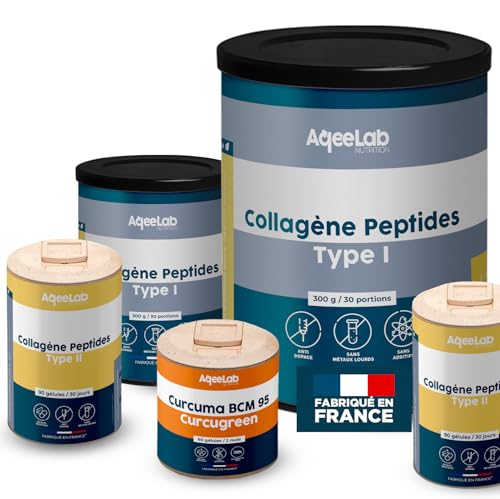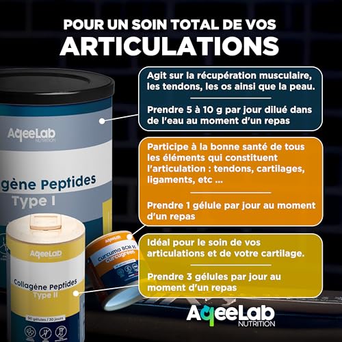 Spécification: Pack Articulation Avancé 2 mois • Neutre • Collagène Type 1 + Collagène Type 2 + Curcuma • Santé des tendons et cartilages • Testé en laboratoire • Made in France • Eco-responsable • AqeeLab Nutrition