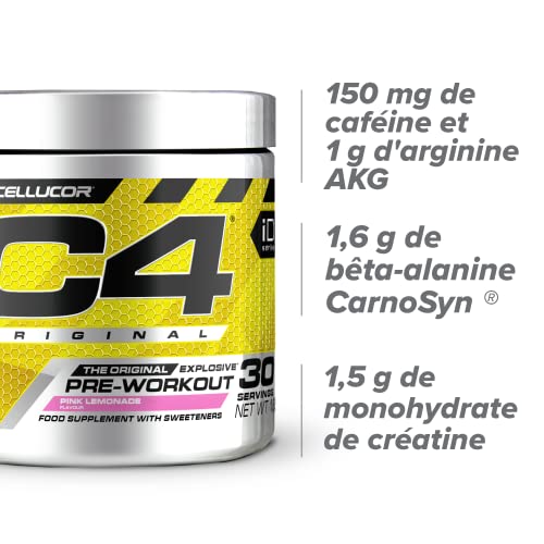 Poudre pré-entraînement C4 Original – limonade/fruits rouges | Boisson énergisante pré-entraînement | 150 mg de caféine + bêta-alanine + monohydrate de créatine | 30 portions