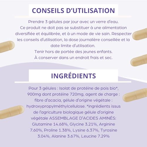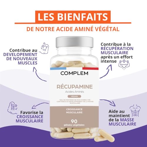 Spécification: Récupamine | BCAA 9 Acides Aminés Essentiels pour les Muscles | Croissance et Récupération Musculaire | Concentré de Protéine Bio et Vegan | 90 Gélules Fabriquées en France | COMPLEM