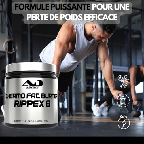 Rippex 8 – Brûleur de Graisse Puissant – 150 Capsules – Complément Perte de Graisse Ultra Efficace pour Énergie et Définition – Brûle Graisse pour Sportifs et Actifs – Addict Sport Nutrition