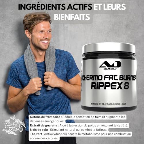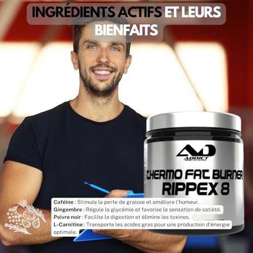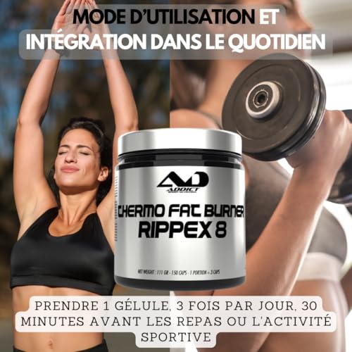 Spécification: Rippex 8 – Brûleur de Graisse Puissant – 150 Capsules – Complément Perte de Graisse Ultra Efficace pour Énergie et Définition – Brûle Graisse pour Sportifs et Actifs – Addict Sport Nutrition